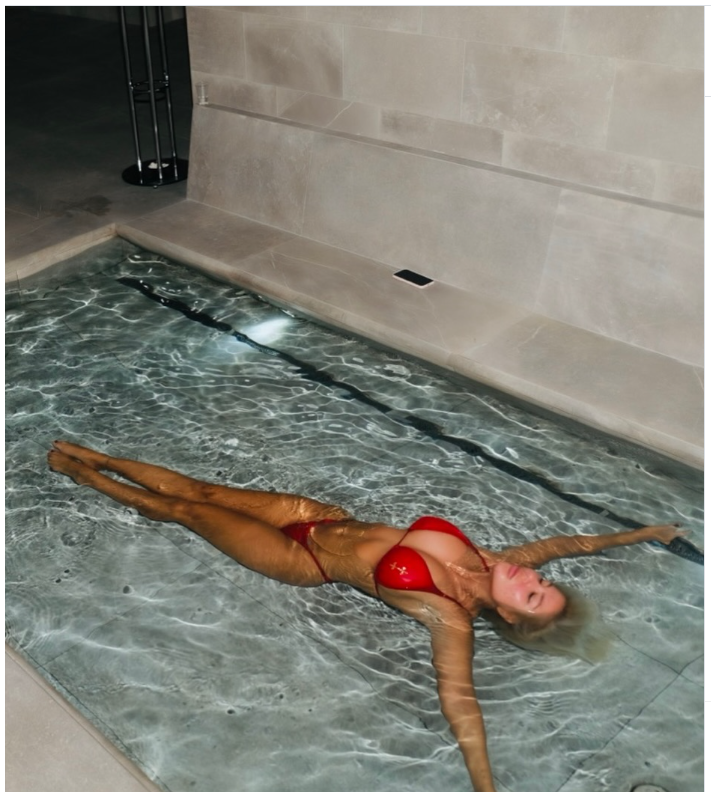 Блондинката е избрала червен мини бански, който акцентира върху извивките й и подчертава спортната й форма. Снимките са направени в светла и елегантна обстановка, която допълнително засилва ефекта от визията й. Коментарите и лайковете под постовете не спират да валят – над 606 000 последователи в социалната мрежа изразяват възхищението си към красотата и излъчването на певицата.