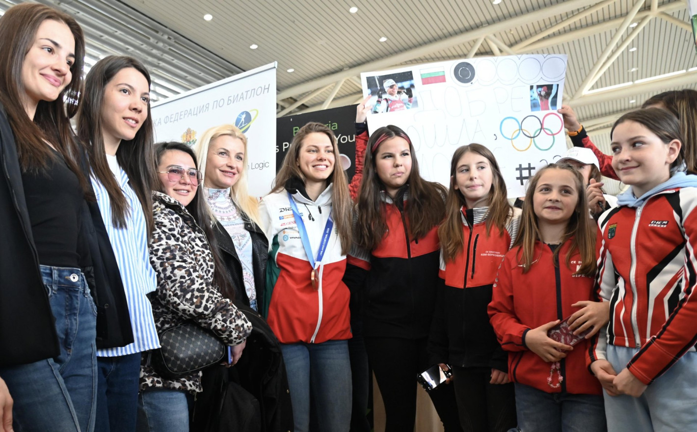Тя кацна на летище "Васил Левски" с полет от Мюнхен, като влезе на терминала заедно със служебния министър на спорта. Там вече я очакваха нейните най-близки, а също така и състезателите от клуба по биатлон "Аякс" от нейния роден Троян.