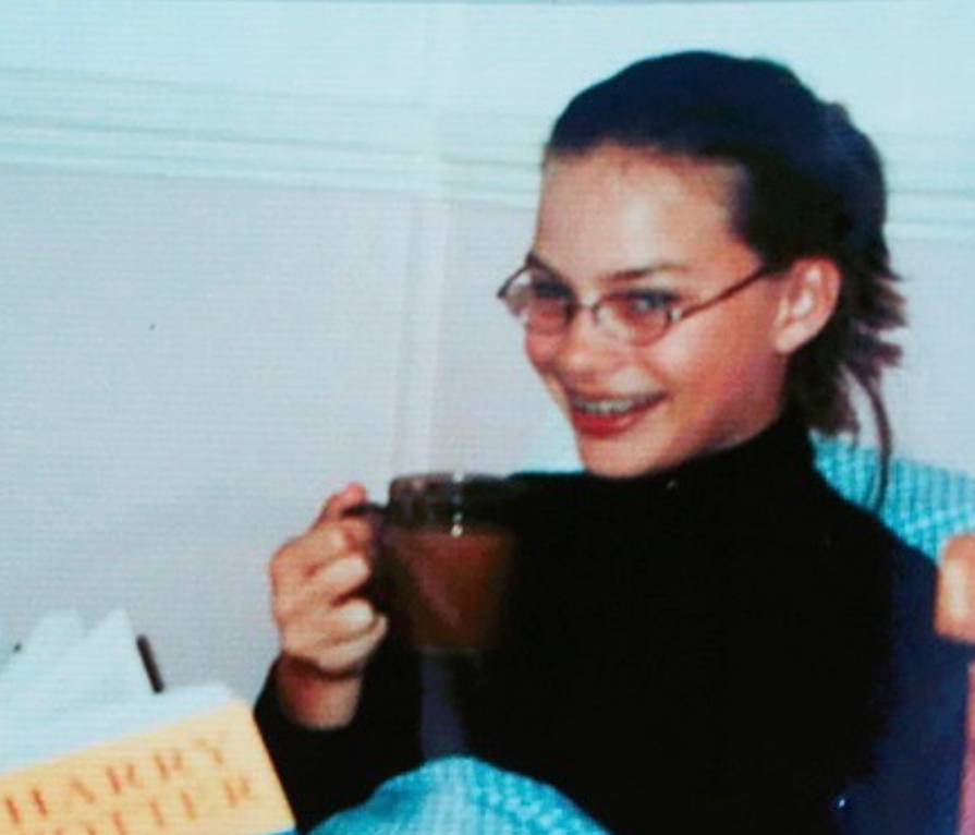 Зад блясъка на червените килими обаче стои обикновено момиче с типични тийнейджърски интереси. Снимка на Марго от 13-годишна възраст показва тази нейна страна – тя чете Хари Потър и Огненият бокал, носи овални очила и брекети и отпива топла напитка.