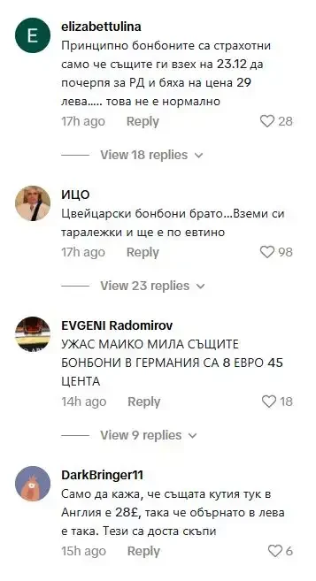 Веднага заваляха и коментари от потребители, които сравняват цените на същите бонбони и в други европейски страни.