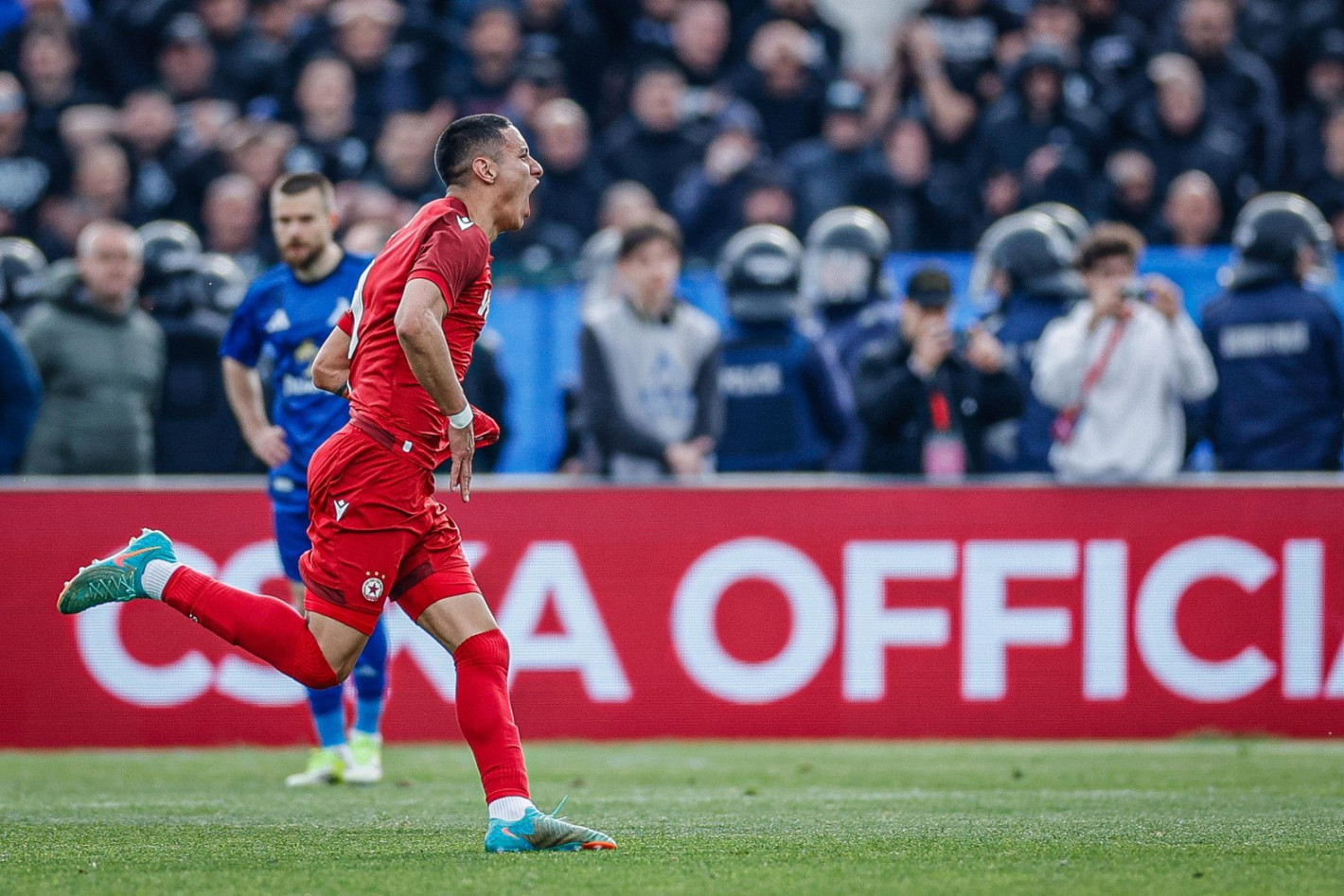 Голямата радост за "червените" дойде в 94-ата минута при още един корнер. Вратарят Лапоухов се включи и отклони с глава, а след това същото направи и Кристиан Димитров. Топката обаче попадна в Леандро Годой, за да може резервата да стреля в далечния ъгъл и да вкара за 1:1.
