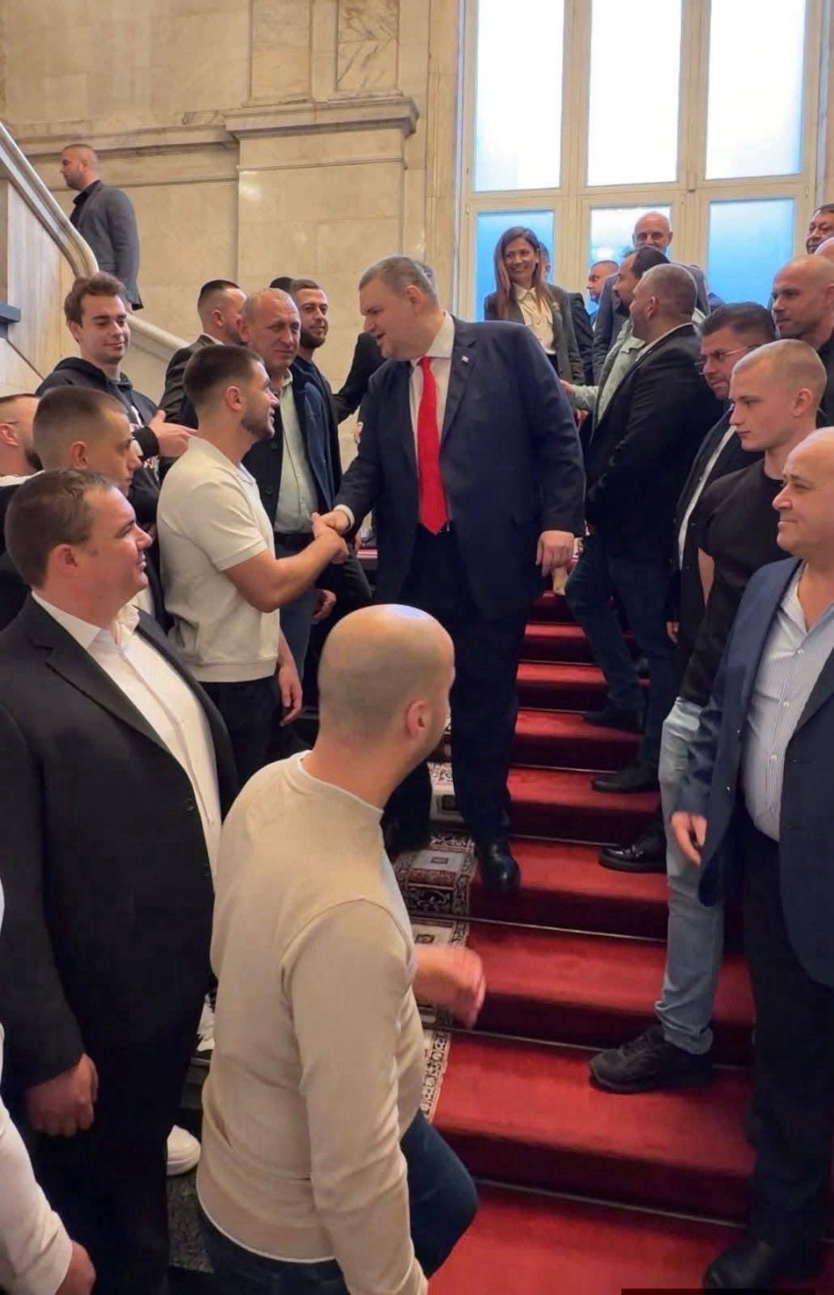 Лидерът на ДПС и ПГ на ДПС-НОВО НАЧАЛО Делян Пеевски се срещна с група младежи от област Бургас, които посетиха Народното събрание и Музея на Сглобката, разположен в кабинет 222А.