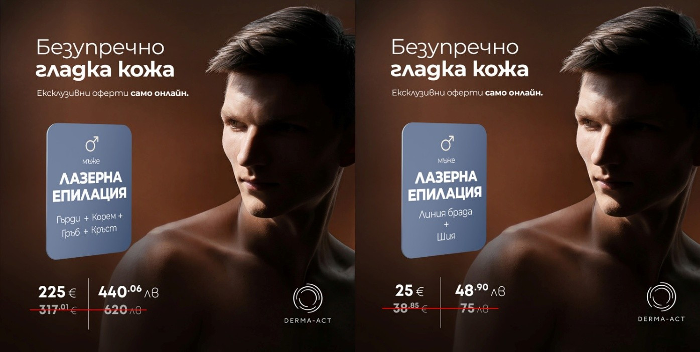 Именно тук се откроява и новата специална кампания на Derma-Act — селекция от атрактивни предложения за лазерна епилация, създадени за жени и мъже, които търсят ефективно, дълготрайно и модерно решение за нежеланото окосмяване.