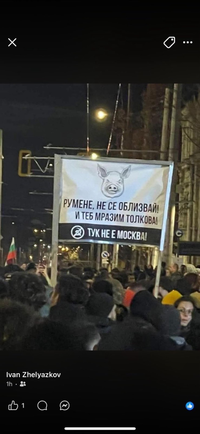 В тълпата бяха издигнати лозунги, казващи: “Румене, не се облизвай! И теб мразим толкова! Тук не е Москва!”
