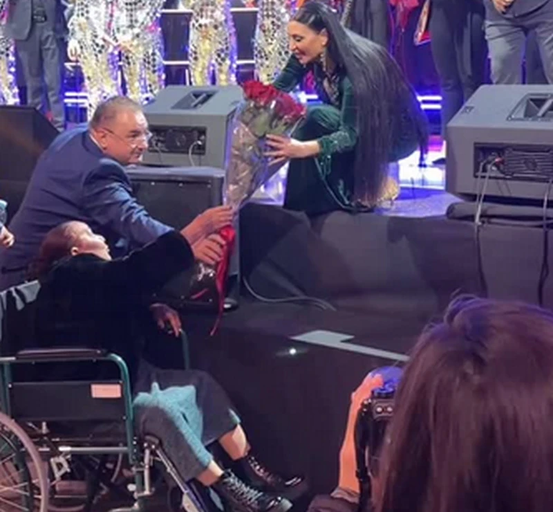 Пременена и гримирана, но в инвалидна количка, майката Мария се приближи до сцената със съдействието на свои близки и на свой ред поднесе букет на Софи Маринова, която празнува 50-ия си юбилей на 5 декември. Тъкмо по този повод певицата изнесе концерти в четири поредни дни в голямата зала - 3, 4, 5 и 6 декември.