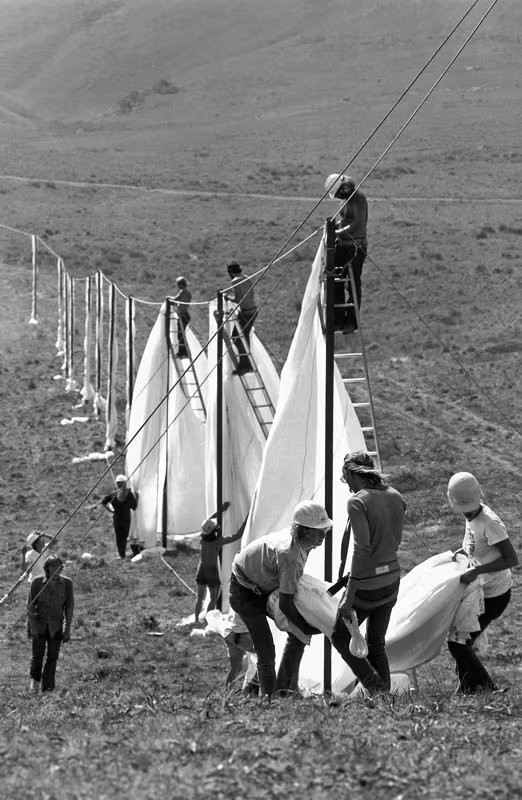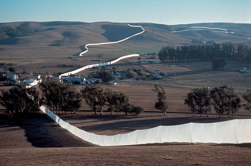 Едно от знаковите произведения в съвременното изкуство е монументална временна инсталация, която през 1976 г. се простира на дължина от близо 40 км през окръзите Сонома и Марин в САЩ